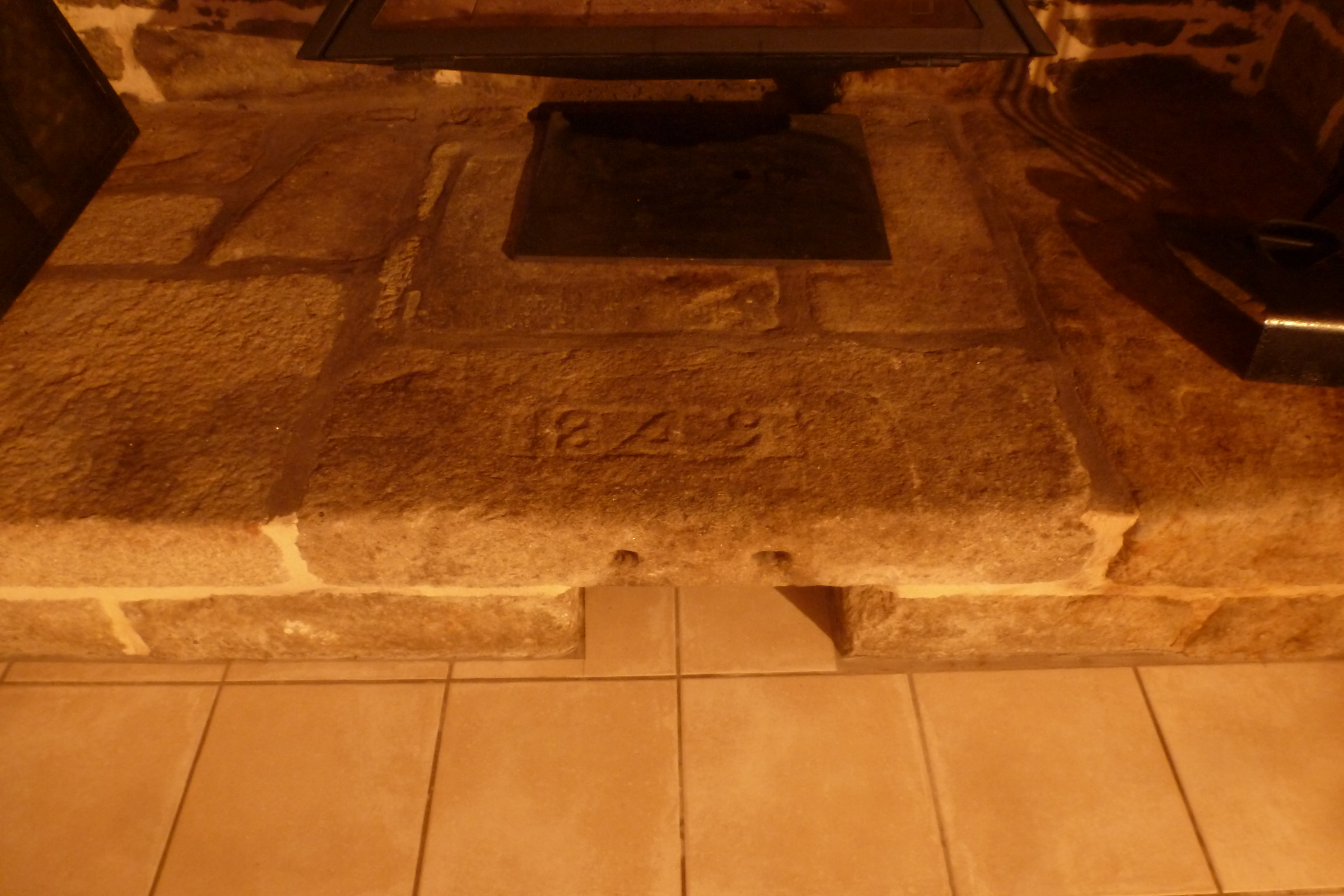 Linteau de la fenêtre de l'écurie (?) réemployé dans la cheminée. (2020)Immatriculation