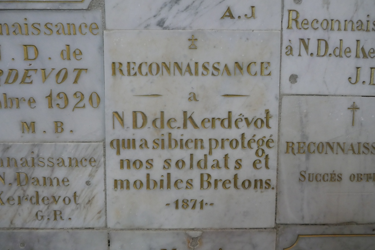 Détail plaque commémorative au milieu des ex-votosImmatriculation
