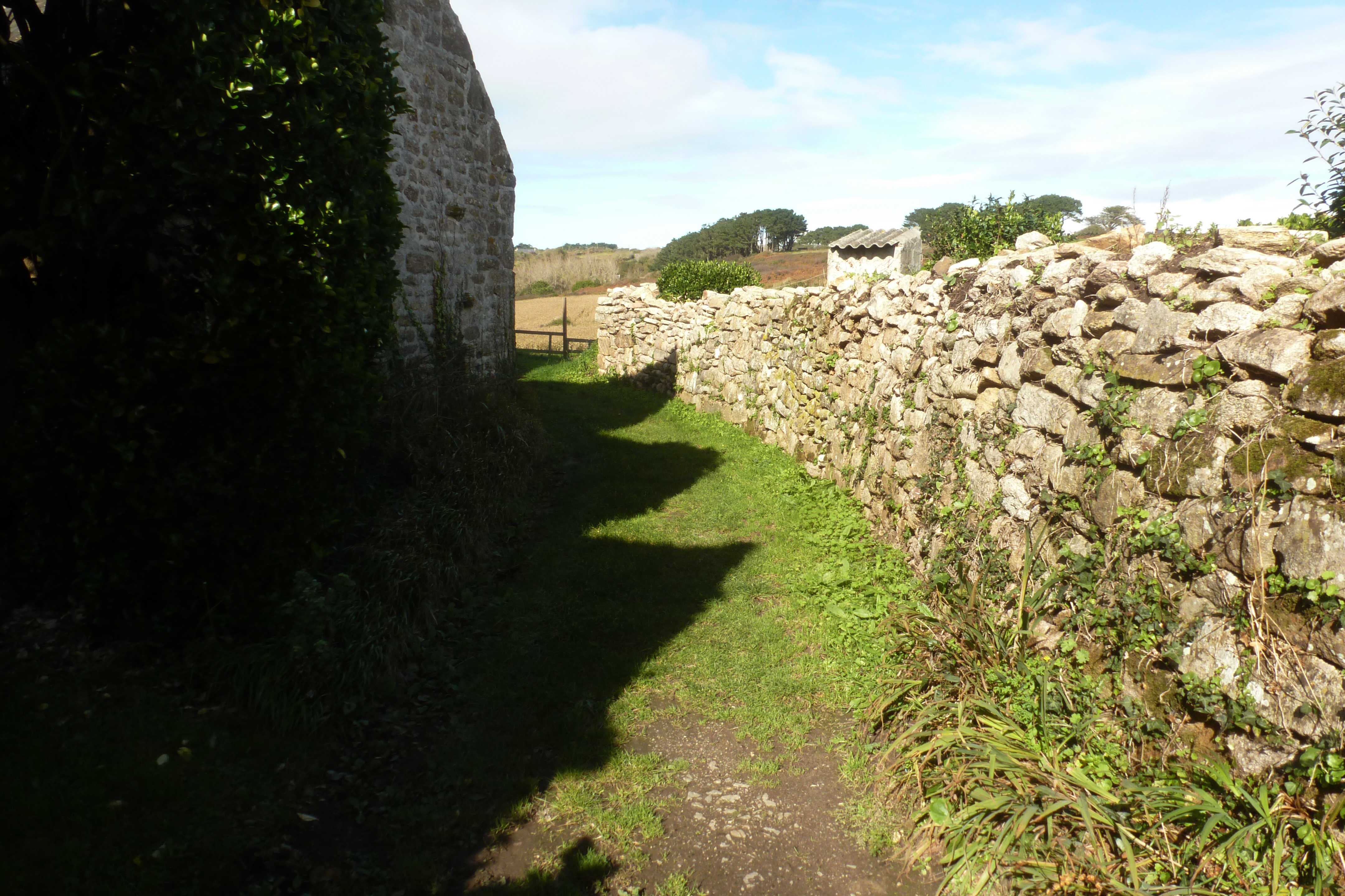 Chemin d'accès à la ferme venant de la grève avec muret de pierres sèches.Immatriculation