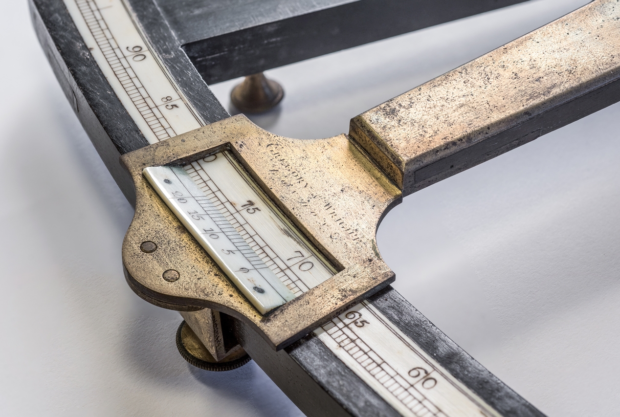 Détail de la signature de Gregory & Wright sur l'octantImmatriculation