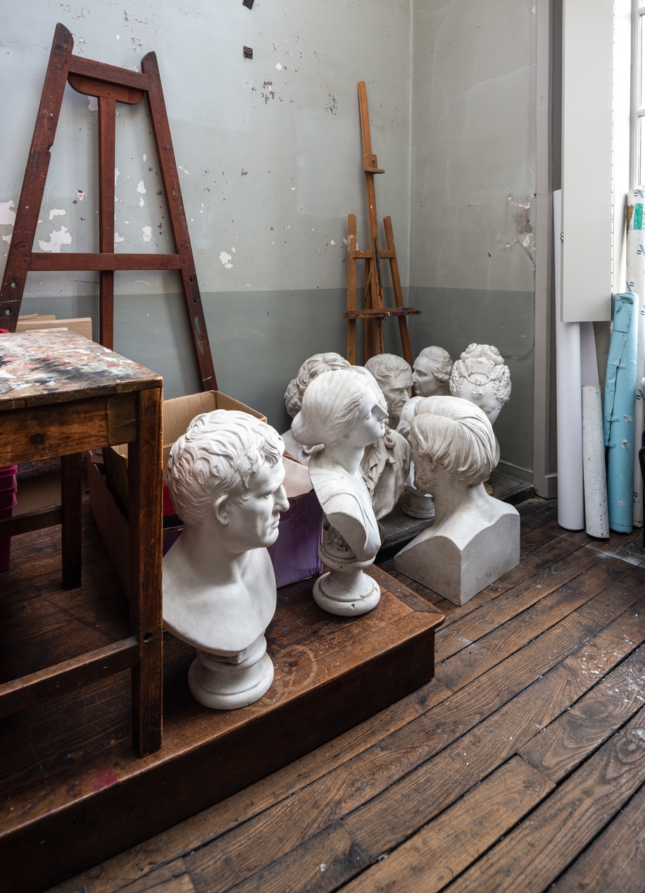 Quelques moulages en plâtre conservés dans une salle annexe de la salle d'arts plastiques actuelleImmatriculation
