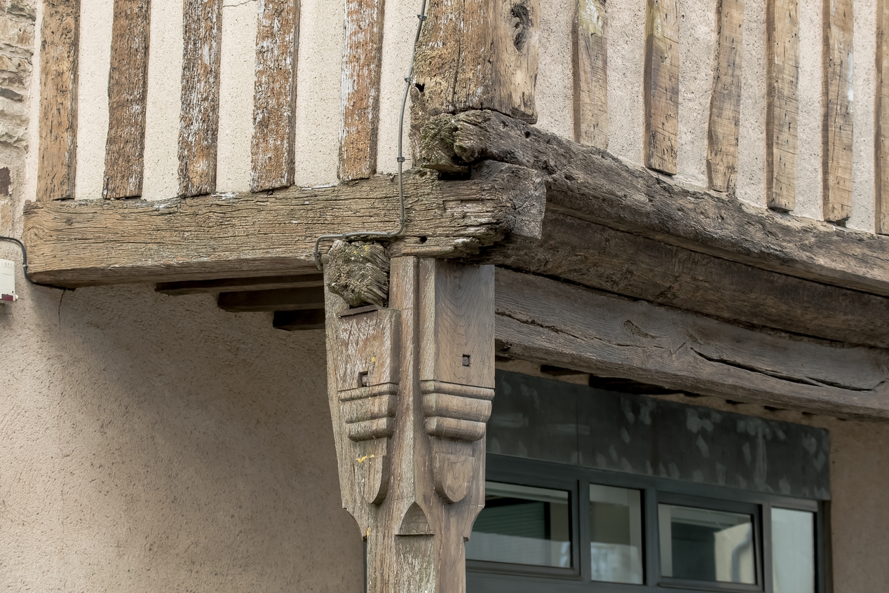 Détail de l'assemblage des bois, poteau cornier sudImmatriculation