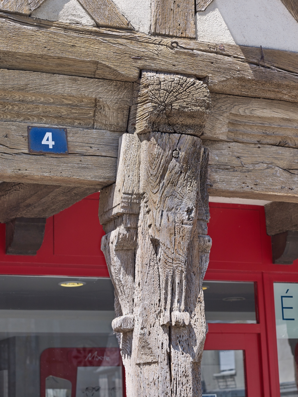 Décor antiquisant sculpté sur plusieurs faces d'un poteau du porcheImmatriculation