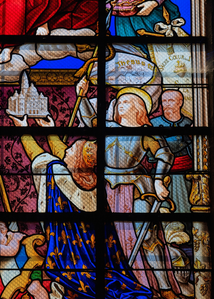 Consécration de la France au Sacré-Coeur : détail du groupe formé par la France, sainte Jeanne d'Arc et le général Charette dans son uniforme de zouave pontificalImmatriculation