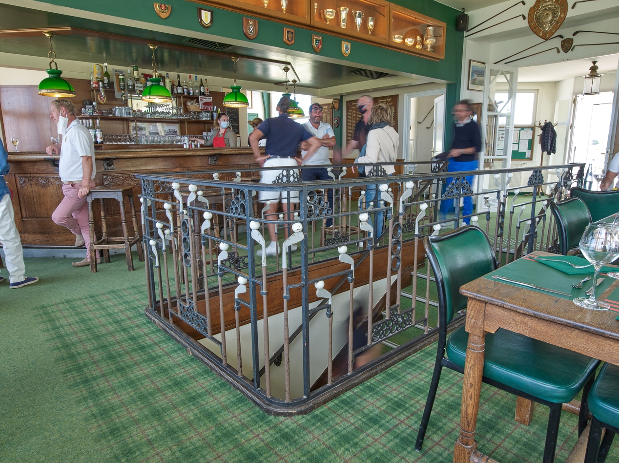 'Club house', vue intérieure, bar et escalier centralImmatriculation