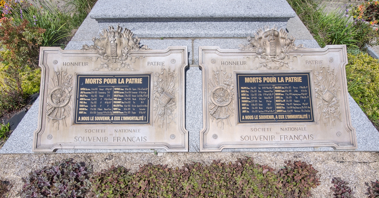 Ensemble des deux plaques commémoratives pour la guerre de Crimée (1853-1856) et de 1870 (Liffré)Immatriculation