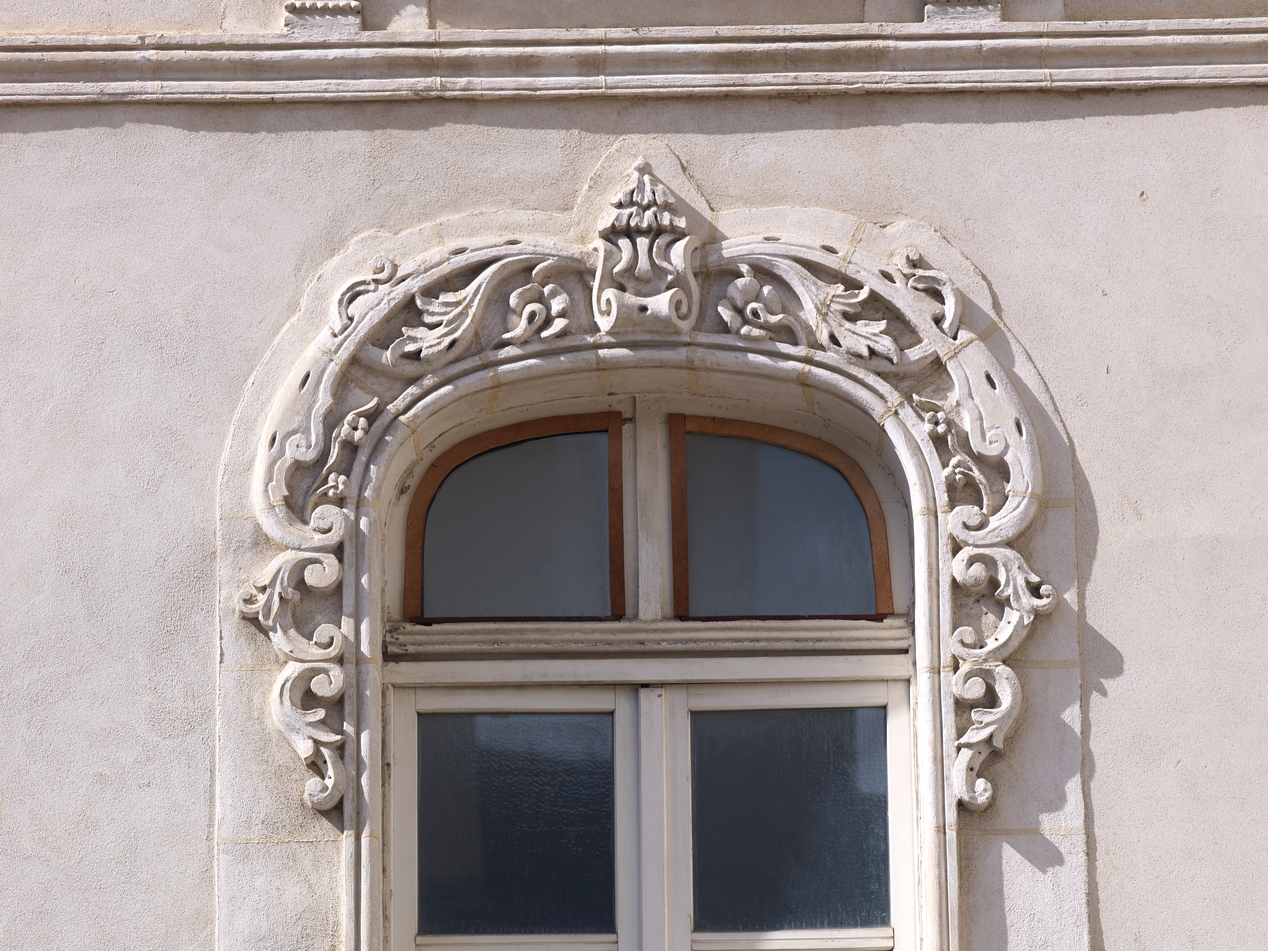 Détail des sculptures d'une fenêtre d'étageImmatriculation