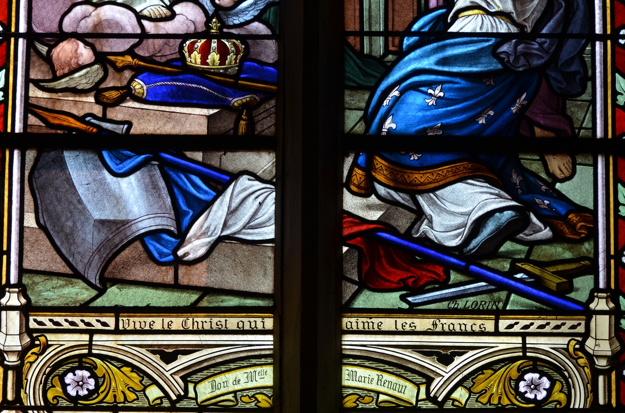 Verrière de la baie 4 (verrière à personnages, vitrail tableau) : Consécration de la France au Sacré Coeur,