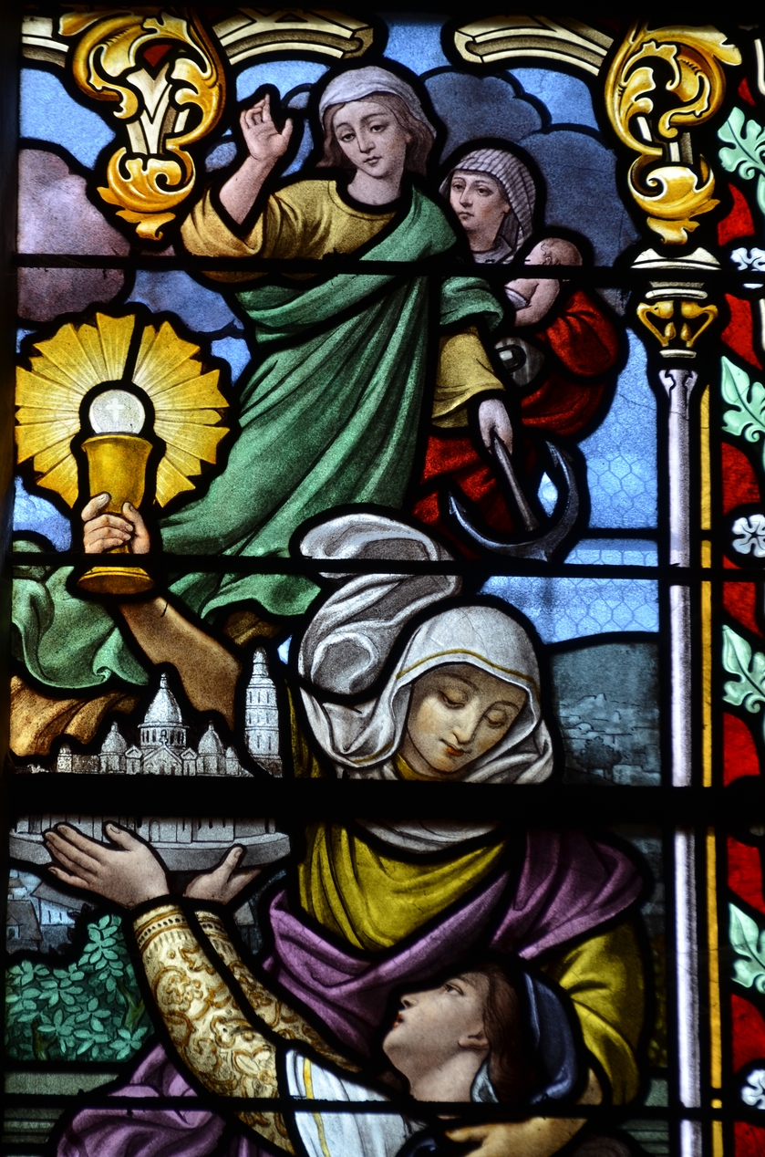 Verrière de la baie 4 (verrière à personnages, vitrail tableau) : Consécration de la France au Sacré Coeur,