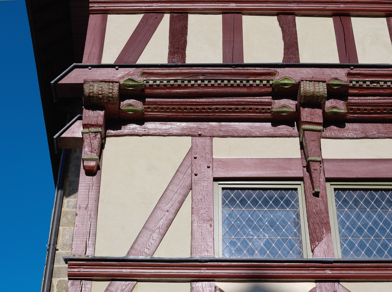 Vue de détail du décor des pigeâtres et des sablières.Immatriculation
