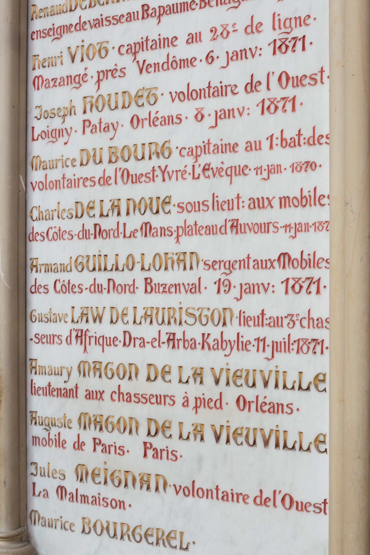 Monument à la mémoire des zouaves pontificaux, détail des nomsImmatriculation
