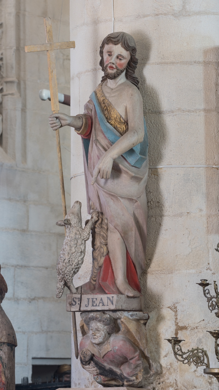 Vue générale : statue de saint Jean-Baptiste.Immatriculation