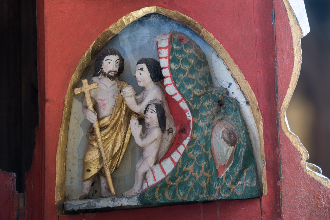 Détail d'une scène de la Vierge ouvrante : descente aux limbes.Immatriculation