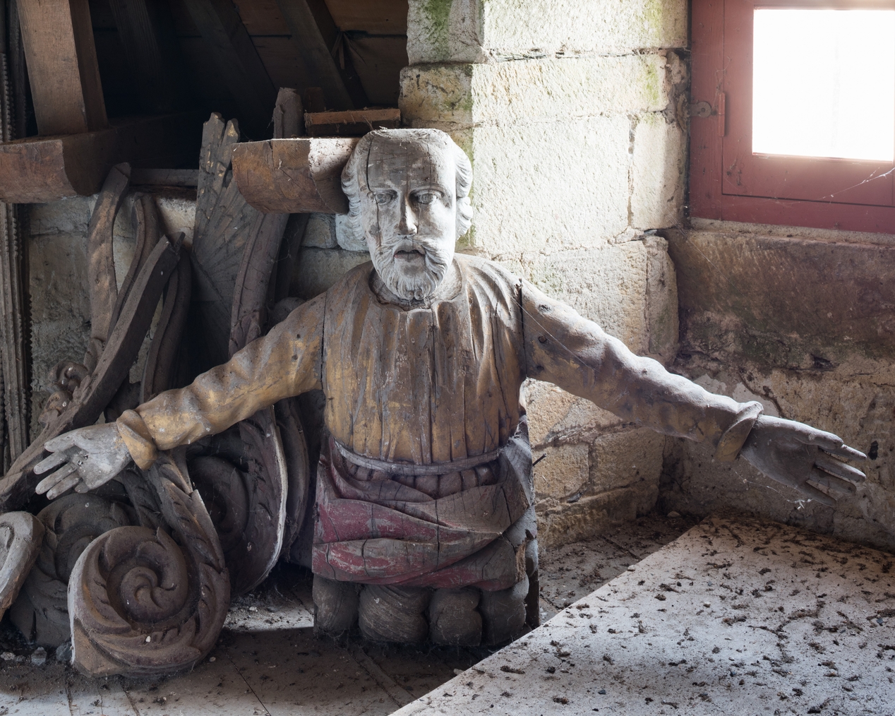 Vue d'ensemble : statue de Dieu le Père en buste au-dessus d'une nuée.Immatriculation