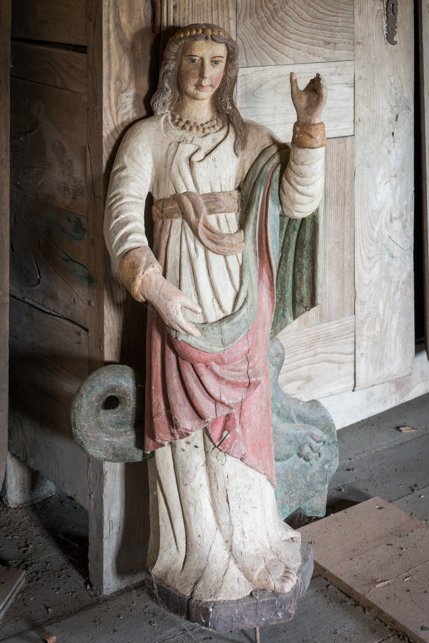 Vue générale : statue de sainte Marguerite.Immatriculation