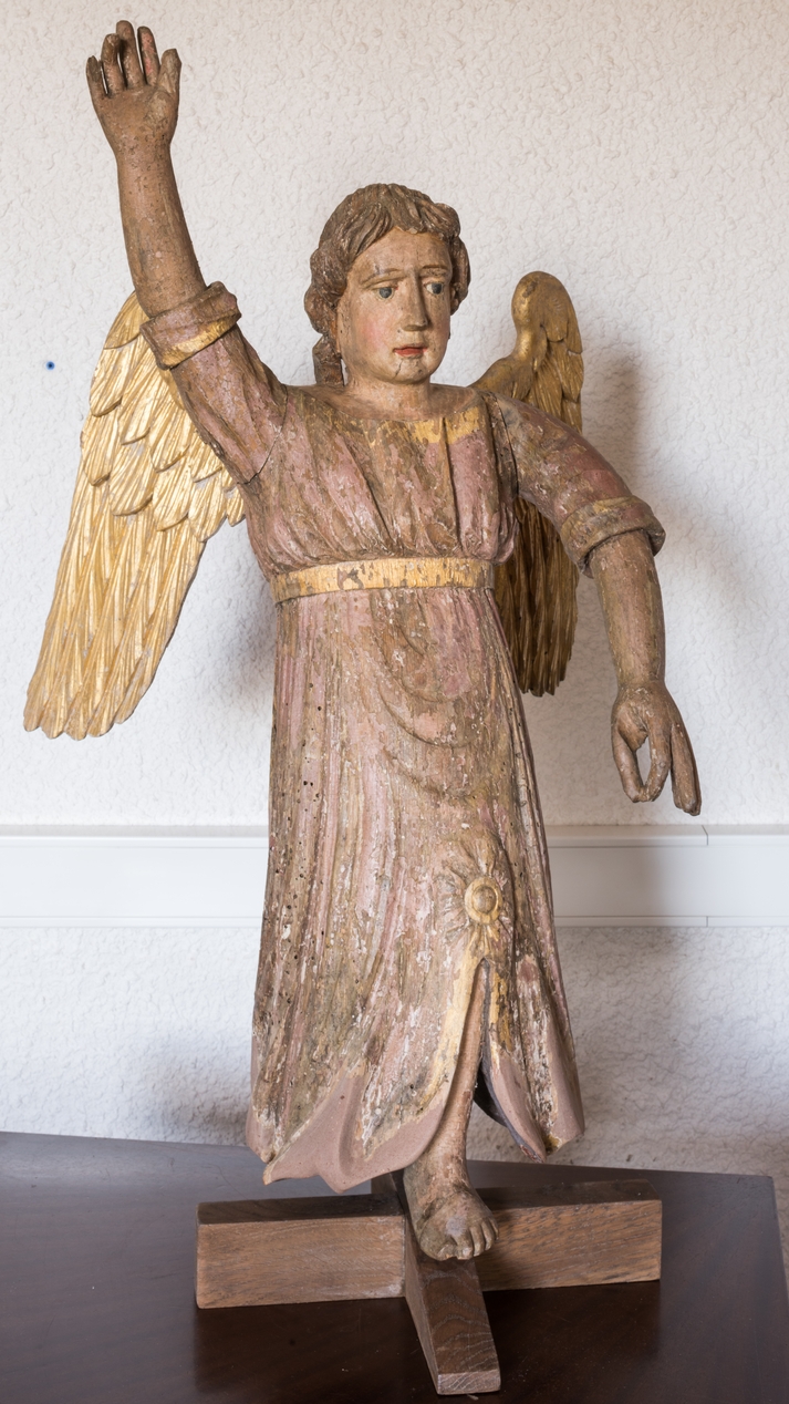 Vue générale : statue d'ange pyrophore.Immatriculation