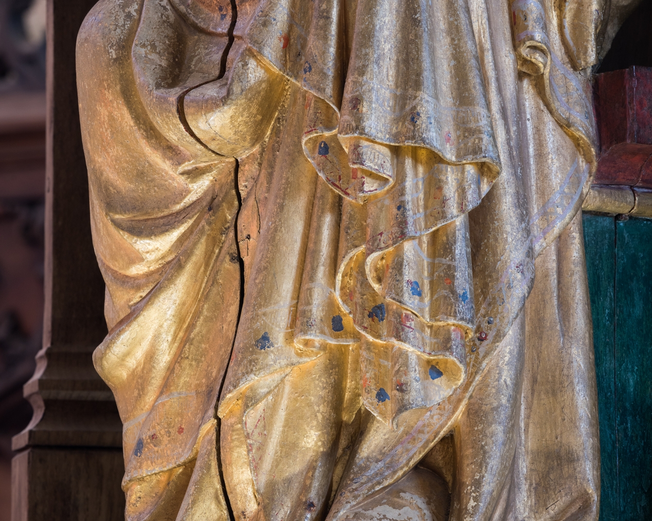 Vue de détail : manteau de la statue de la Vierge ouvrante.Immatriculation