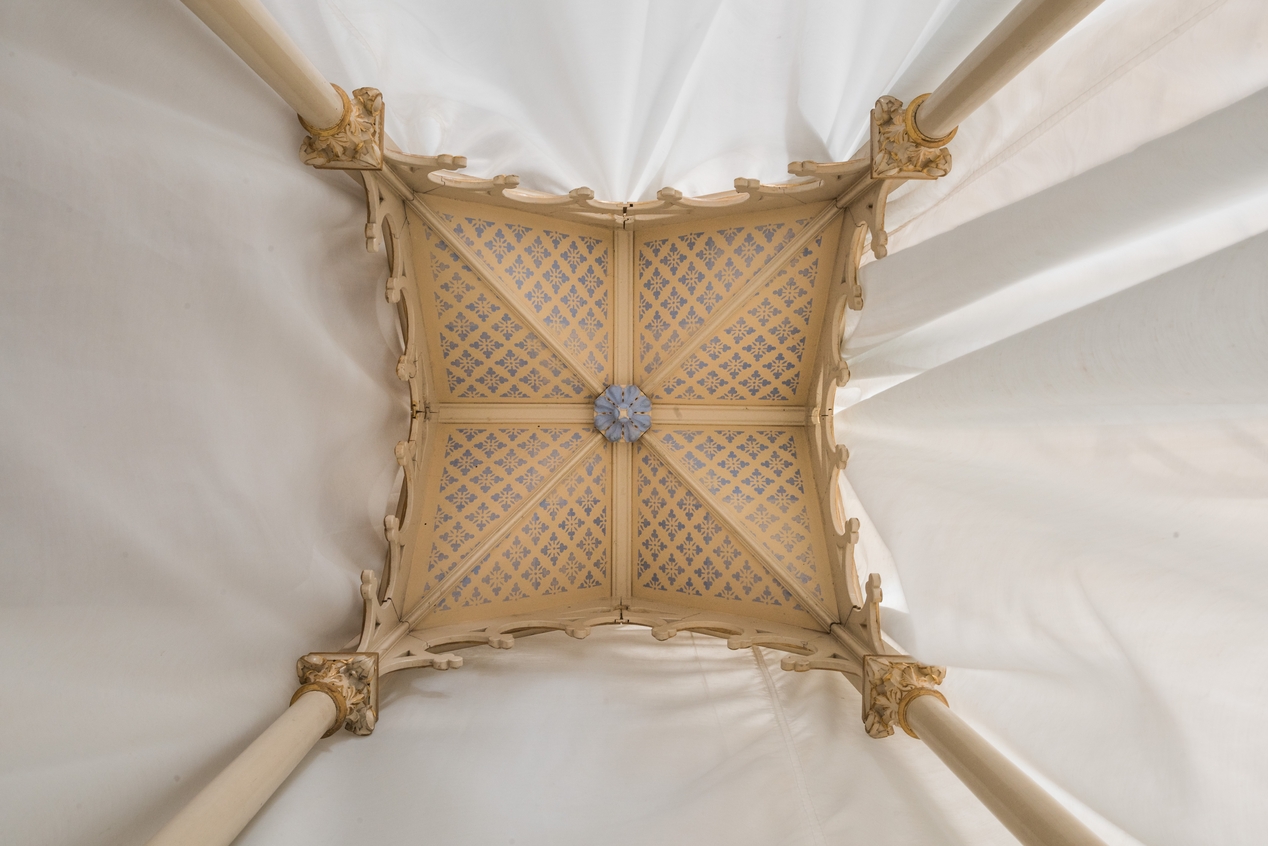Vue de détail : voûte ornée du baldaquin de procession.Immatriculation