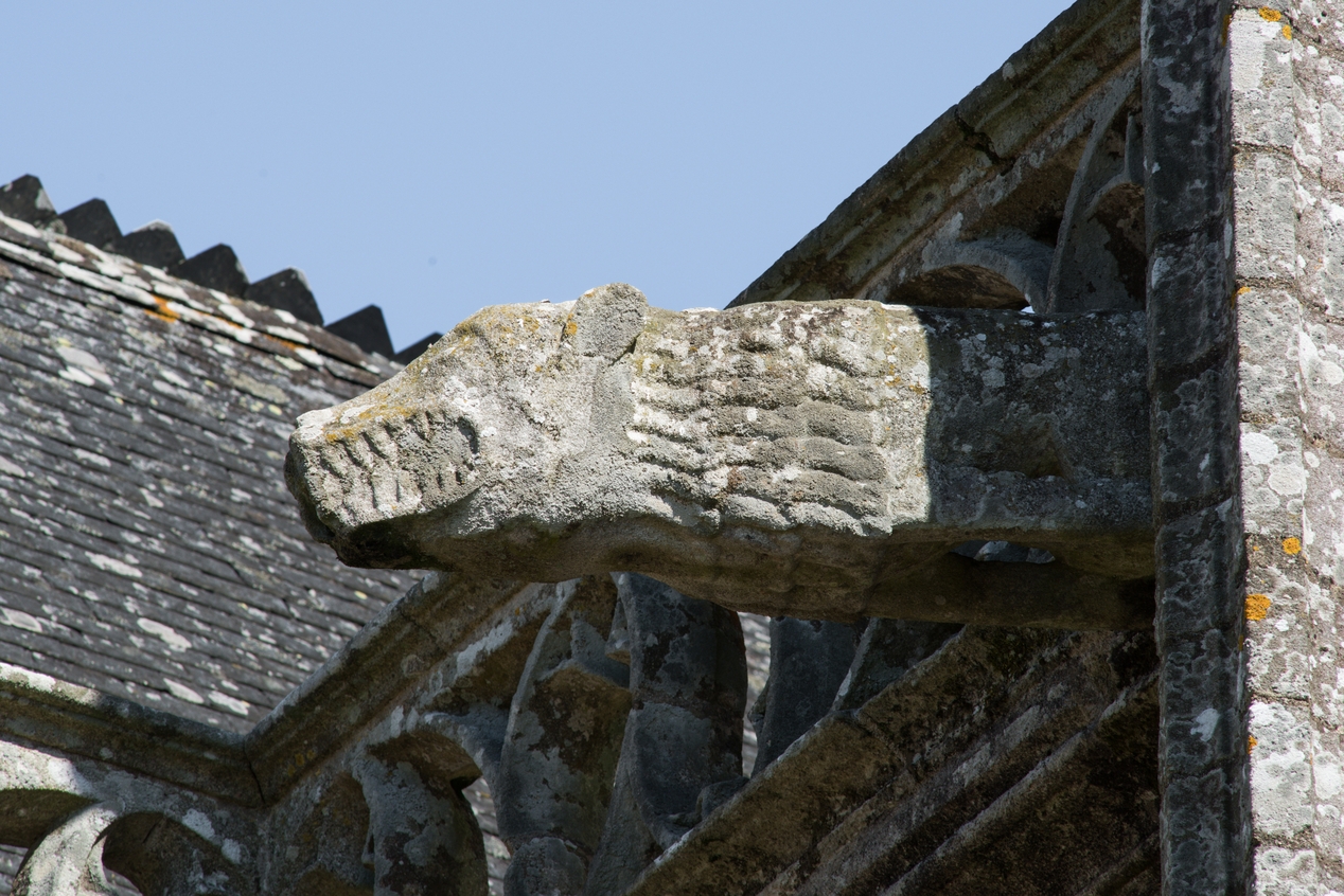 Vue de détail : gargouille au sud du chevet.Immatriculation