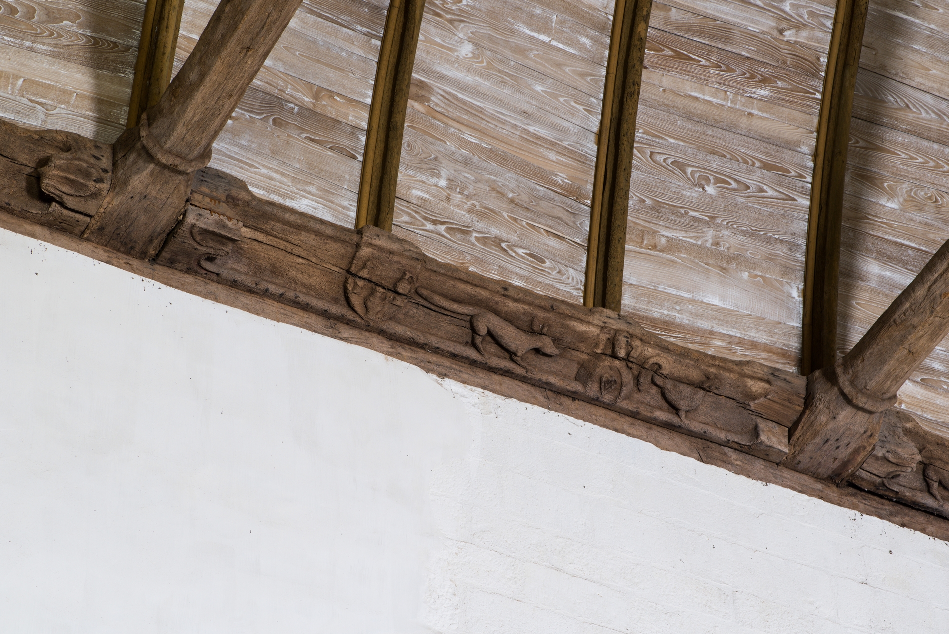 Vue de détail : sablière sur le mur sud de la chapelle.Immatriculation