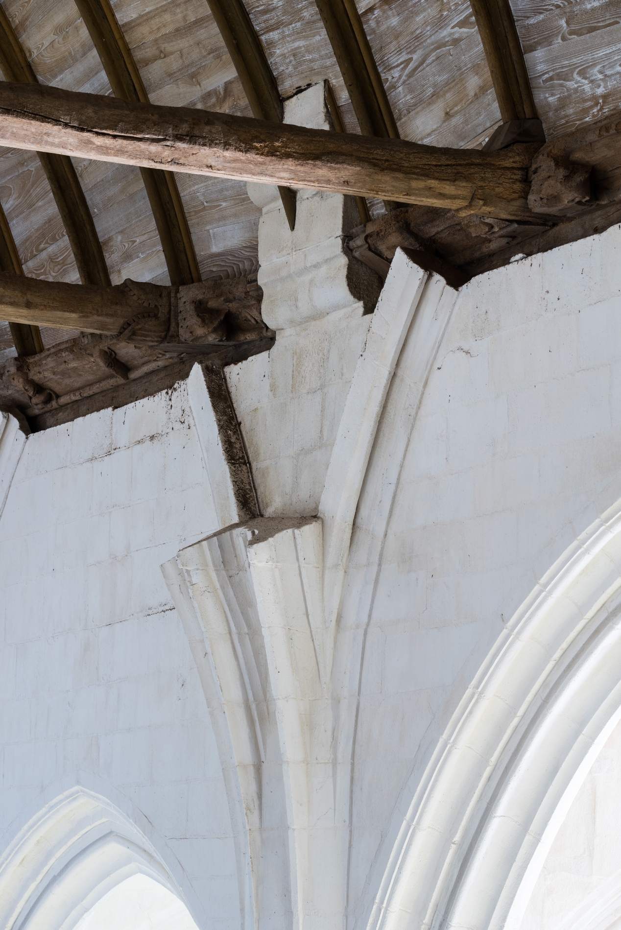 Vue de détail : départ de la voûte prévue intialement sur le vaisseau central.Immatriculation