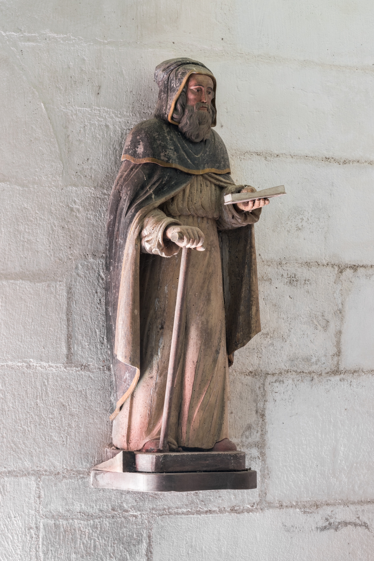 Vue d'ensemble : statue de saint Antoine le Grand, dit Antoine d'Egypte.Immatriculation