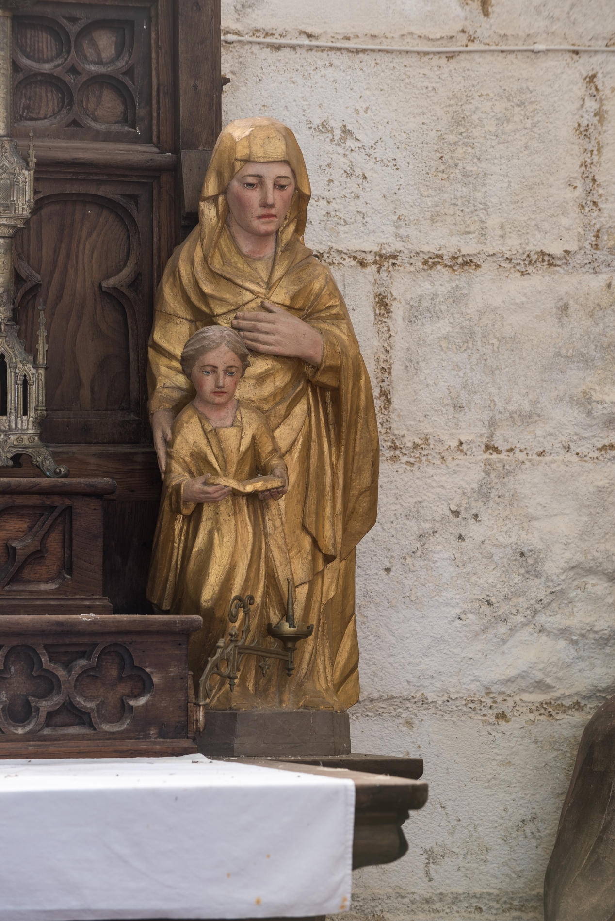 Vue d''ensemble : groupe sculpté représentant sainte Anne et Marie (Education de la Vierge).Immatriculation