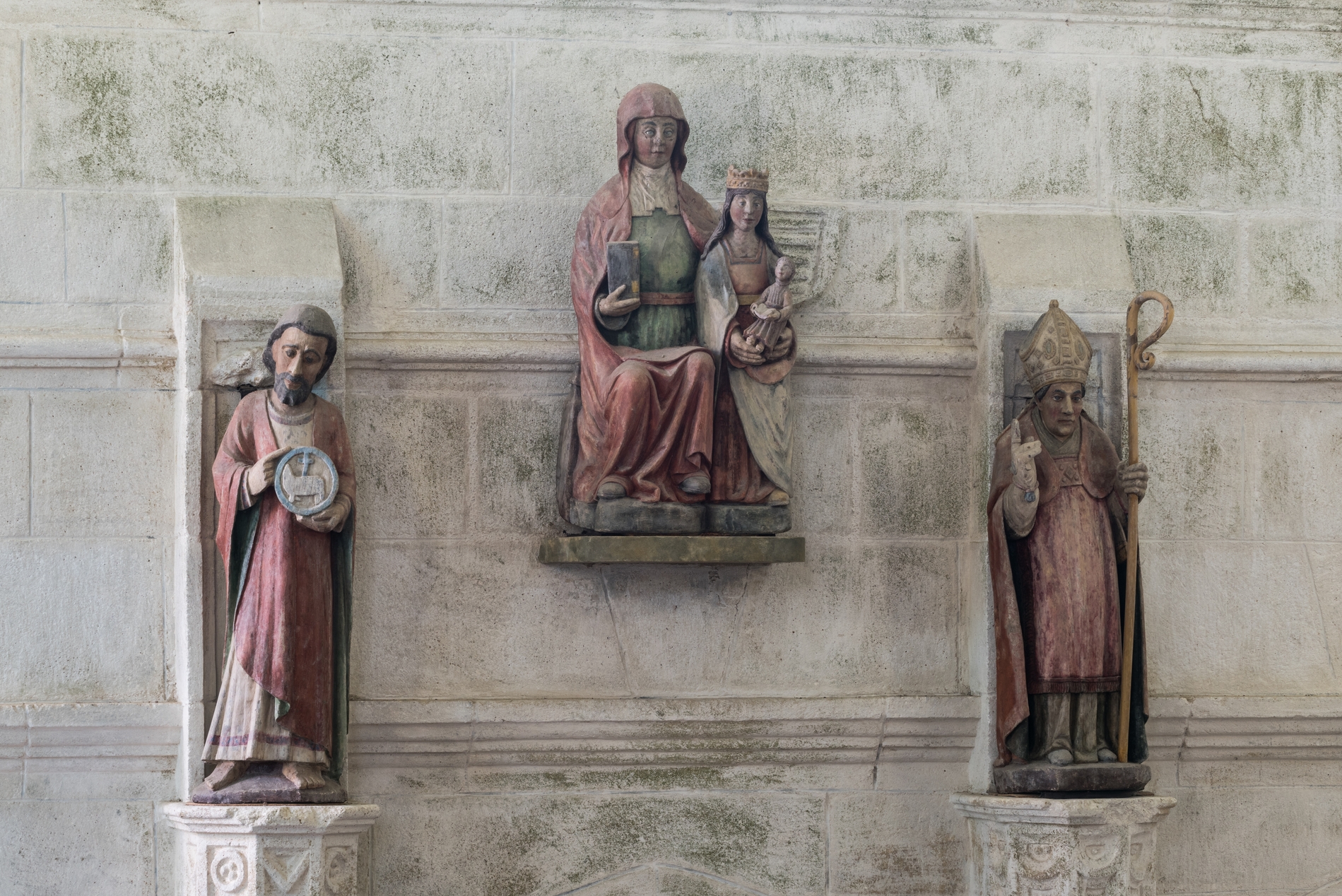 Vue générale : statues de saint Jean-Baptiste, de la sainte Anne trinitaire et d'un saint évêque.Immatriculation