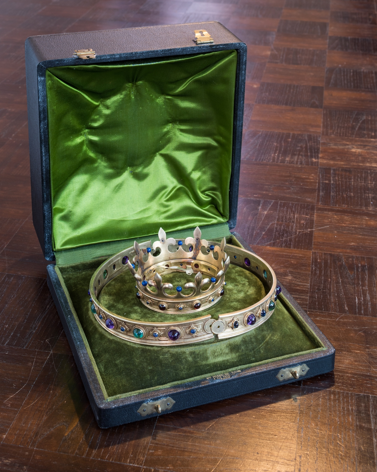 Vue d'ensemble : couronnes de procession de la Vierge ouvrante.Immatriculation
