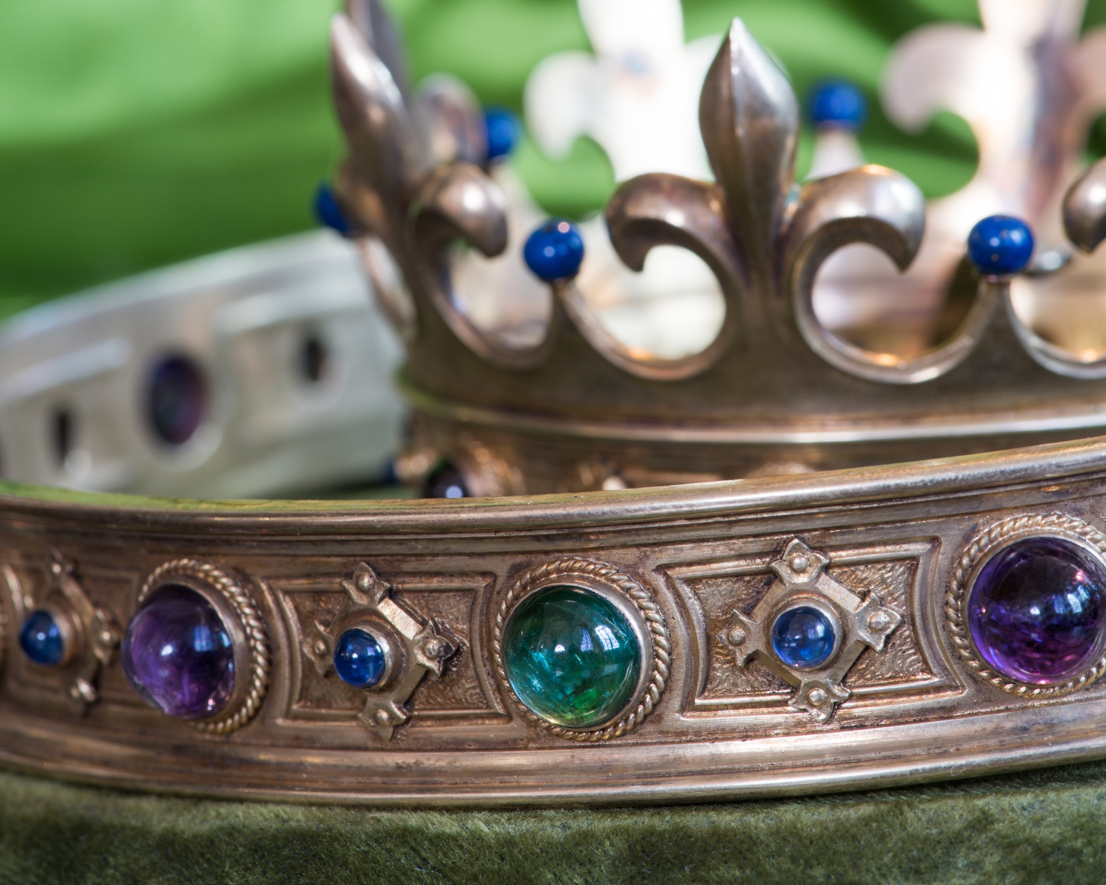 Vue de détail : couronnes de procession de la Vierge ouvrante.Immatriculation
