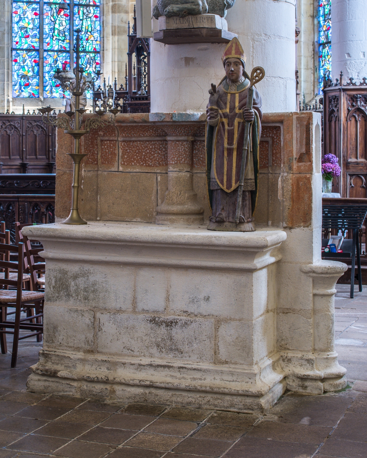 Vue d'ensemble : autel secondaire en pierre.Immatriculation