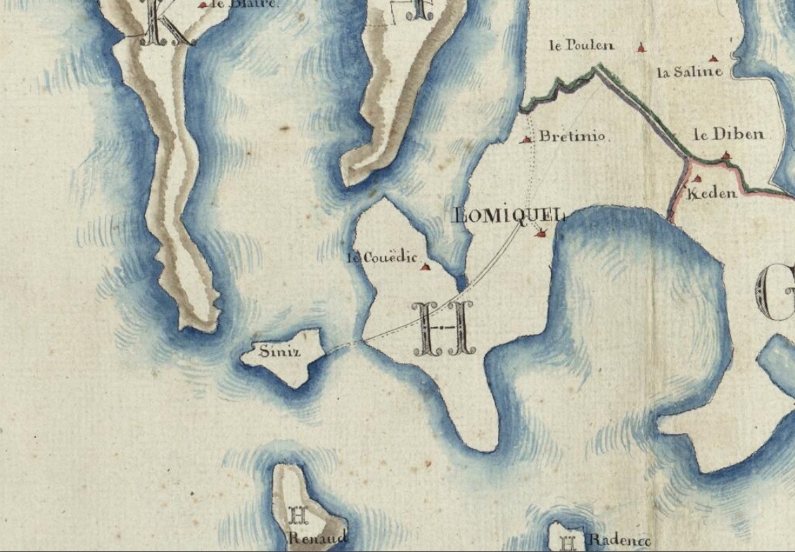 Extrait du cadastre napoléonien de Baden : gué de Locmiquel vers les Sept-ÎlesImmatriculation