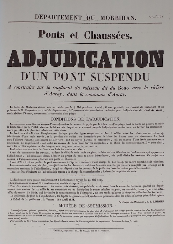Adjudication du pont suspendu sur le confluent de la rivière du Bono avec celle d'Auray, 22 mai 1837Immatriculation