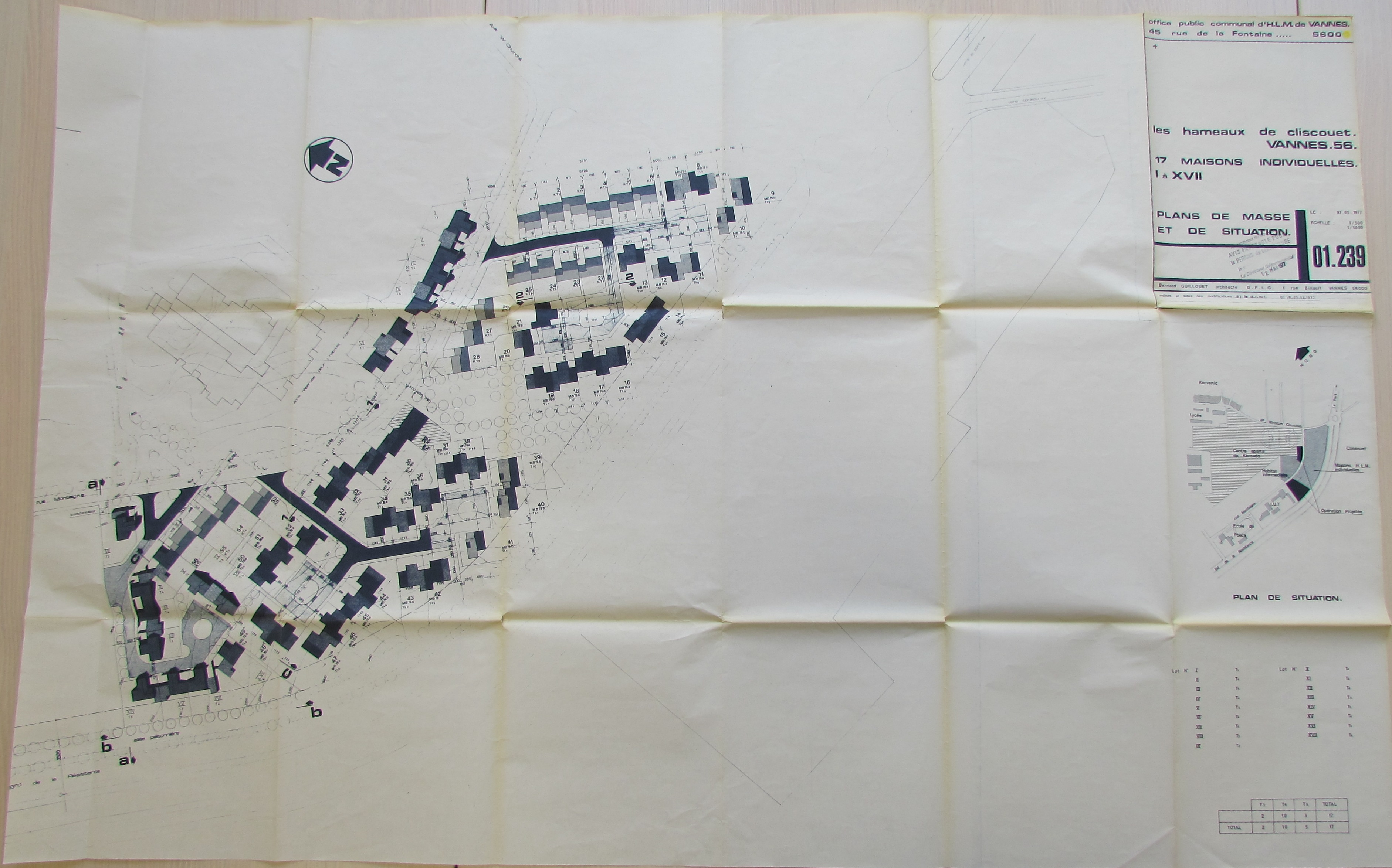 Les hameaux de Cliscouët : plan de masse et de situation 17 maisons individuelles, 1977 par Bernard Guillouët. AM Vannes 35 W 6407Immatriculation