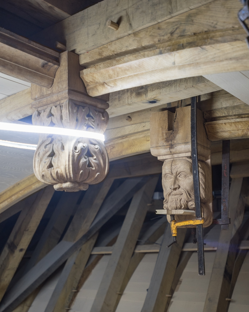 Clefs sculptées de la charpente reconstruite suite à l'incendie (état en 2021)Immatriculation