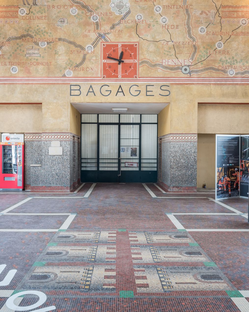 Le hall, détail du sol en mosaïque et du service de bagagerieImmatriculation