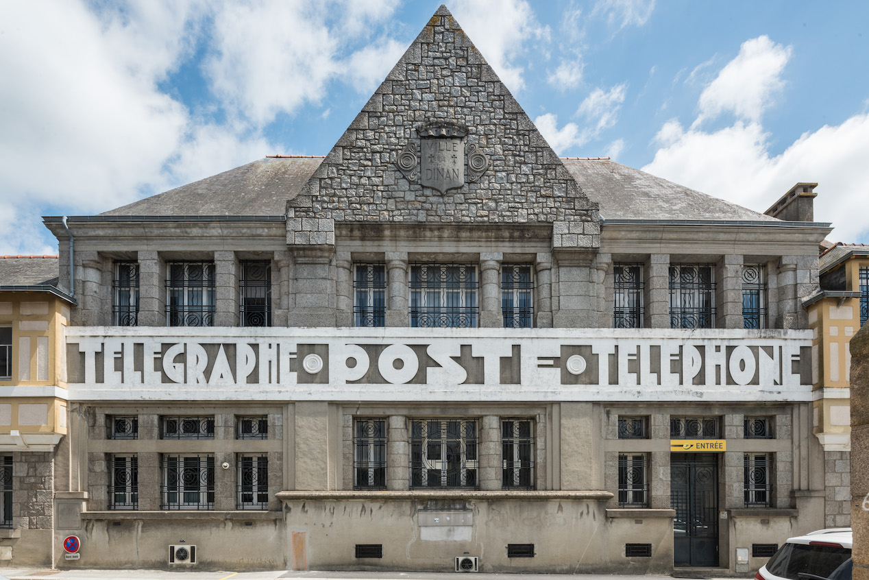 La façade régionaliste du bureau de poste avec sa graphie art déco (1935)Immatriculation