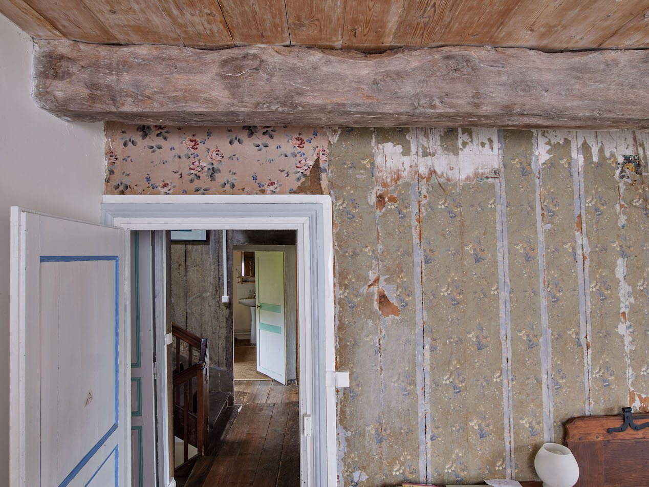 Etage du logis : cloisons et charpente, restes de papier peint (2021)Immatriculation