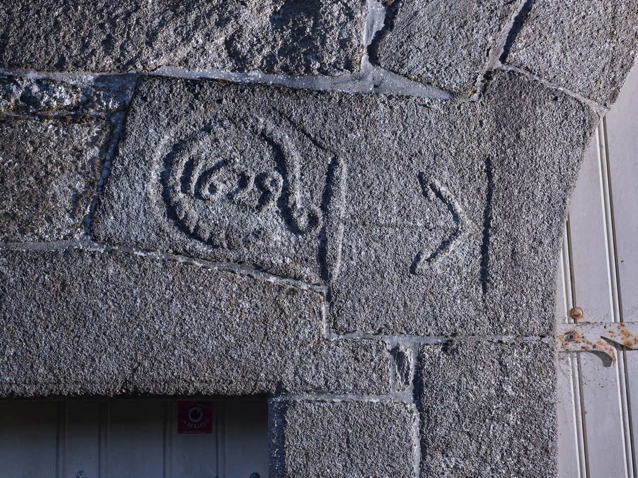 Portail et porte piétonne : à gauche, date 1629 entourée d'une ancre de marine et son cordageImmatriculation