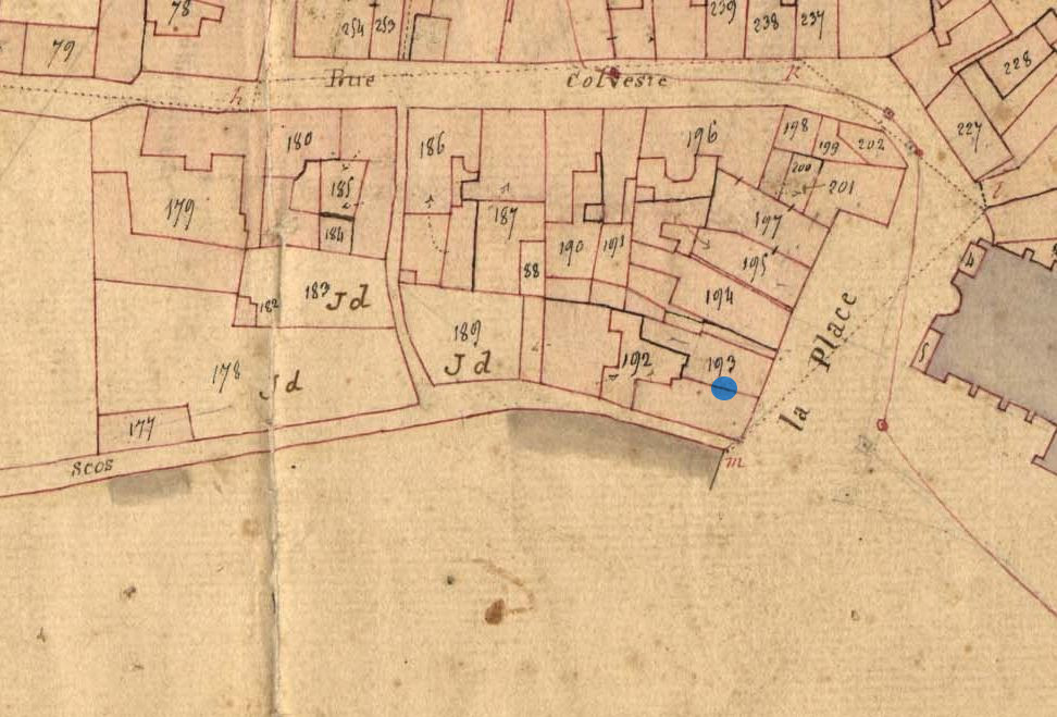 Le logis double 24-25 place du Martray en 1834. Extrait du cadastre ancien, section A1 (A.D. 22, série 3 P 267/1)Immatriculation