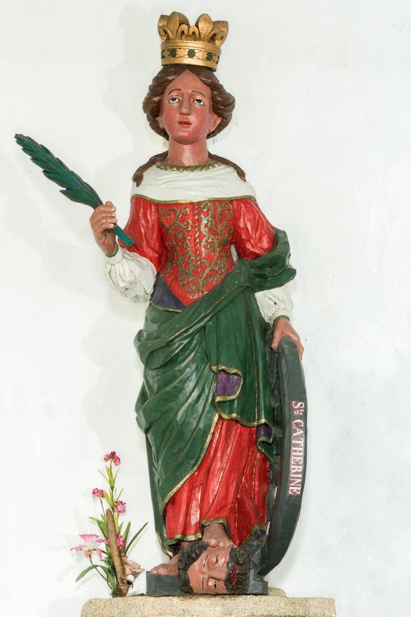 Statue (d'applique, petite nature) : sainte Catherine d'Alexandrie, chapelle Sainte-Catherine (Mespaul),