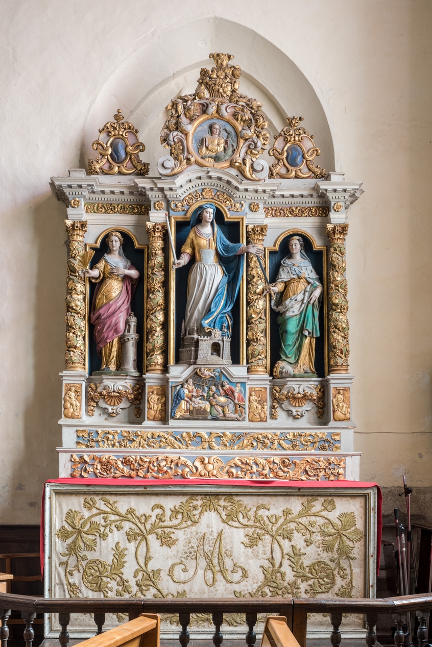 Vue générale du retable et des 3 statuesImmatriculation