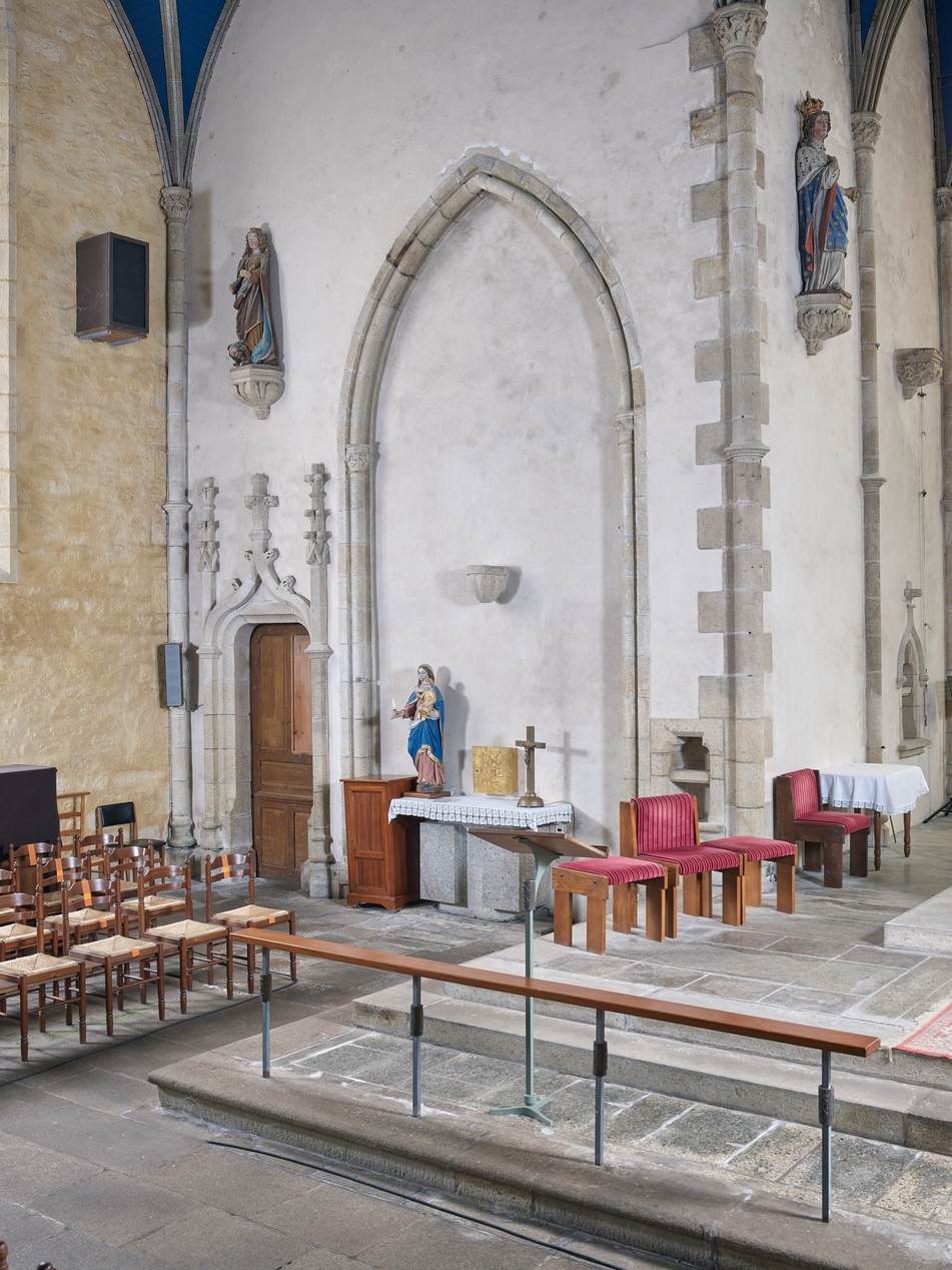 Vue du bras nord du transept : la statue est présentée à l'angle du mur estImmatriculation