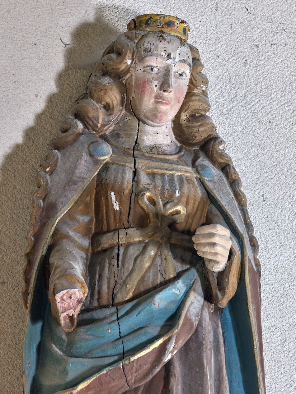 Statue (petite nature, d'applique) : sainte Catherine d'Alexandrie, église paroissiale Saint-Milliau (Plonévez-Porzay),