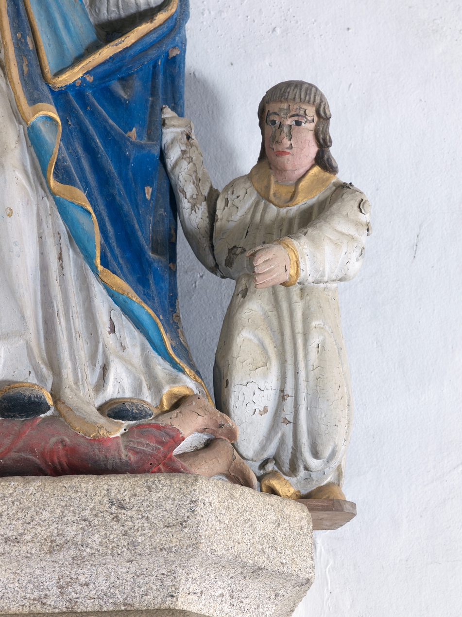 Vue de détail d'un ange entourant la figure principaleImmatriculation