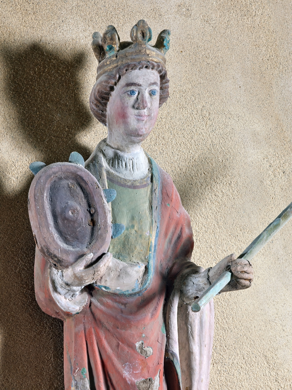Statue (d'applique, petite nature) : sainte Catherine d'Alexandrie, chapelle Notre-Dame de Penhors (Pouldreuzic),
