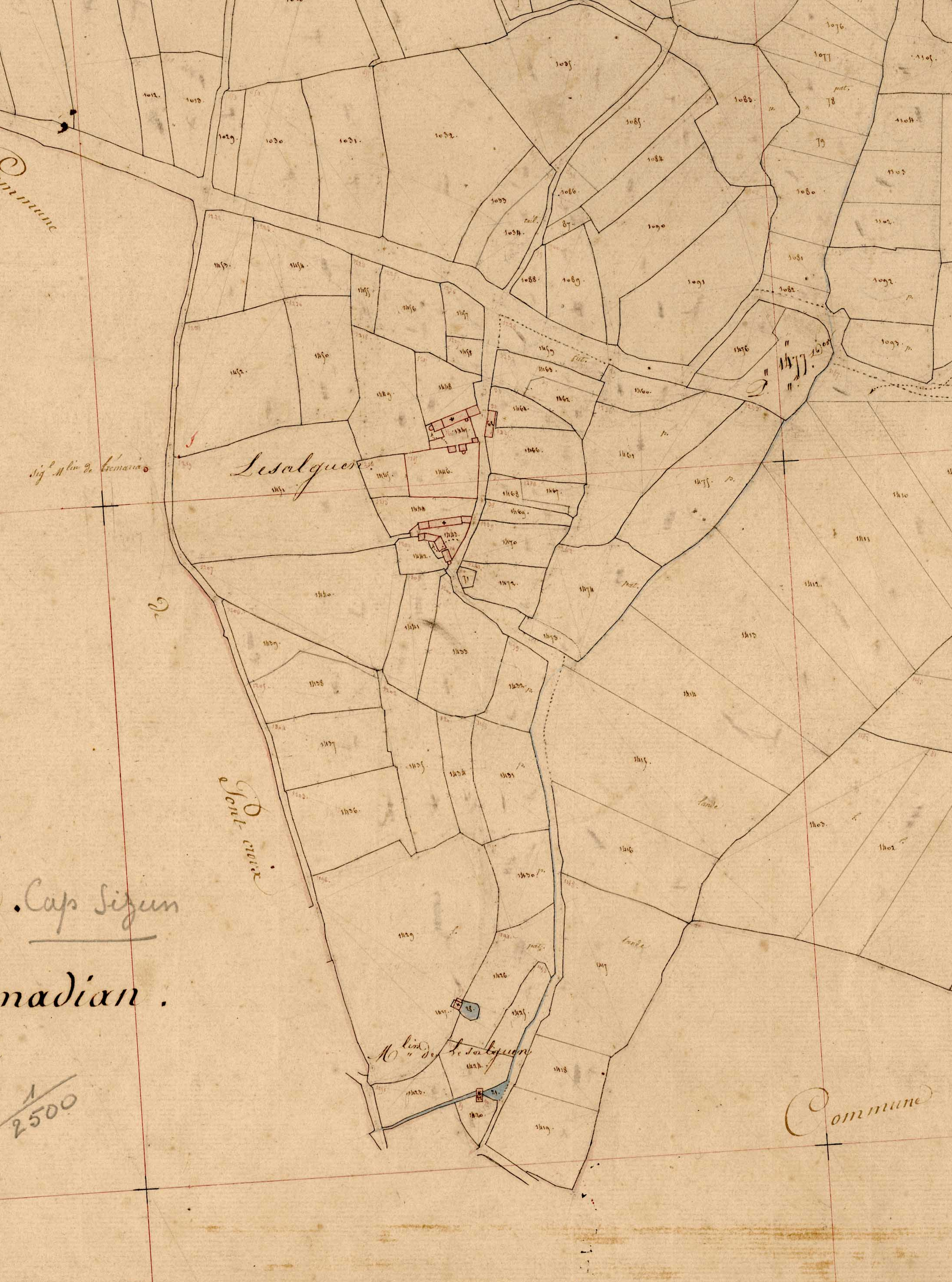 Village et moulin de Lesalguen, Section E 3 de Kermadian du cadastre ancien de la commune de Beuzec-Cap-Sizun, 1837.Immatriculation
