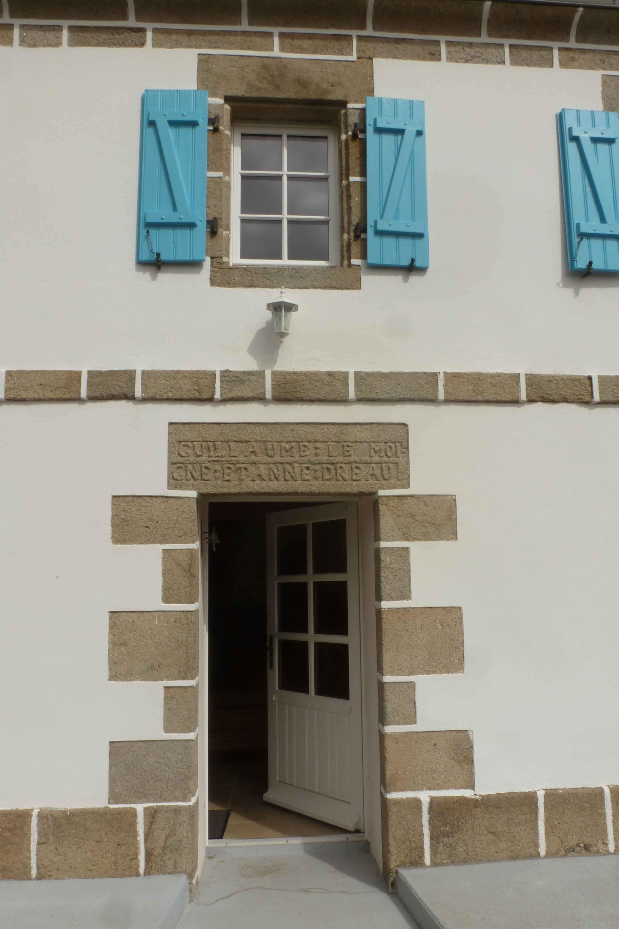 Le Merdy, ferme 2 datée 1839. Travée centrale du logis et inscription : GUILLAUME : LE MOI / GNE ET ANNE : DREAU.Immatriculation