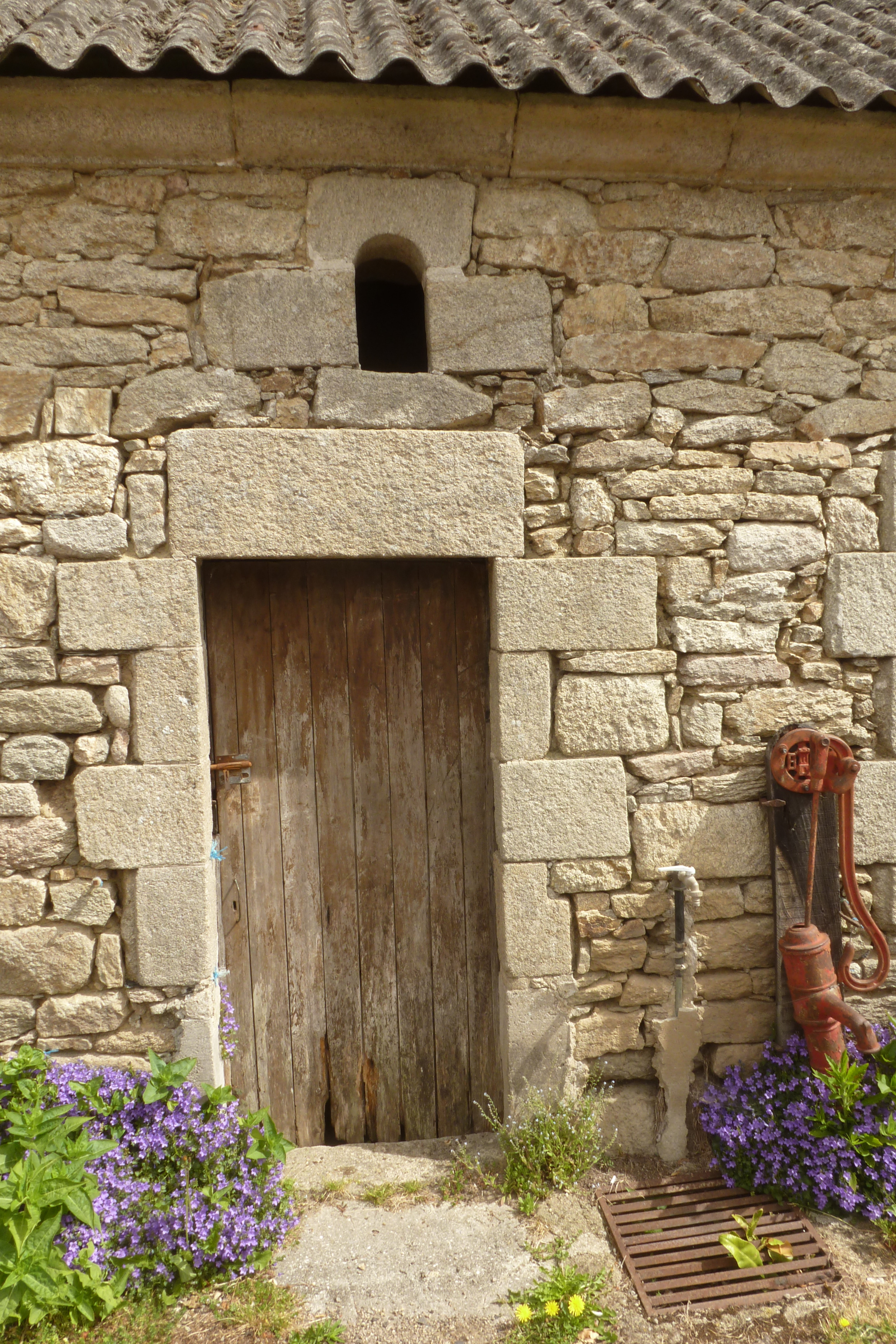 Keranlay, ferme 1, logis. Détail de la porte d'entrée et chatière.Immatriculation