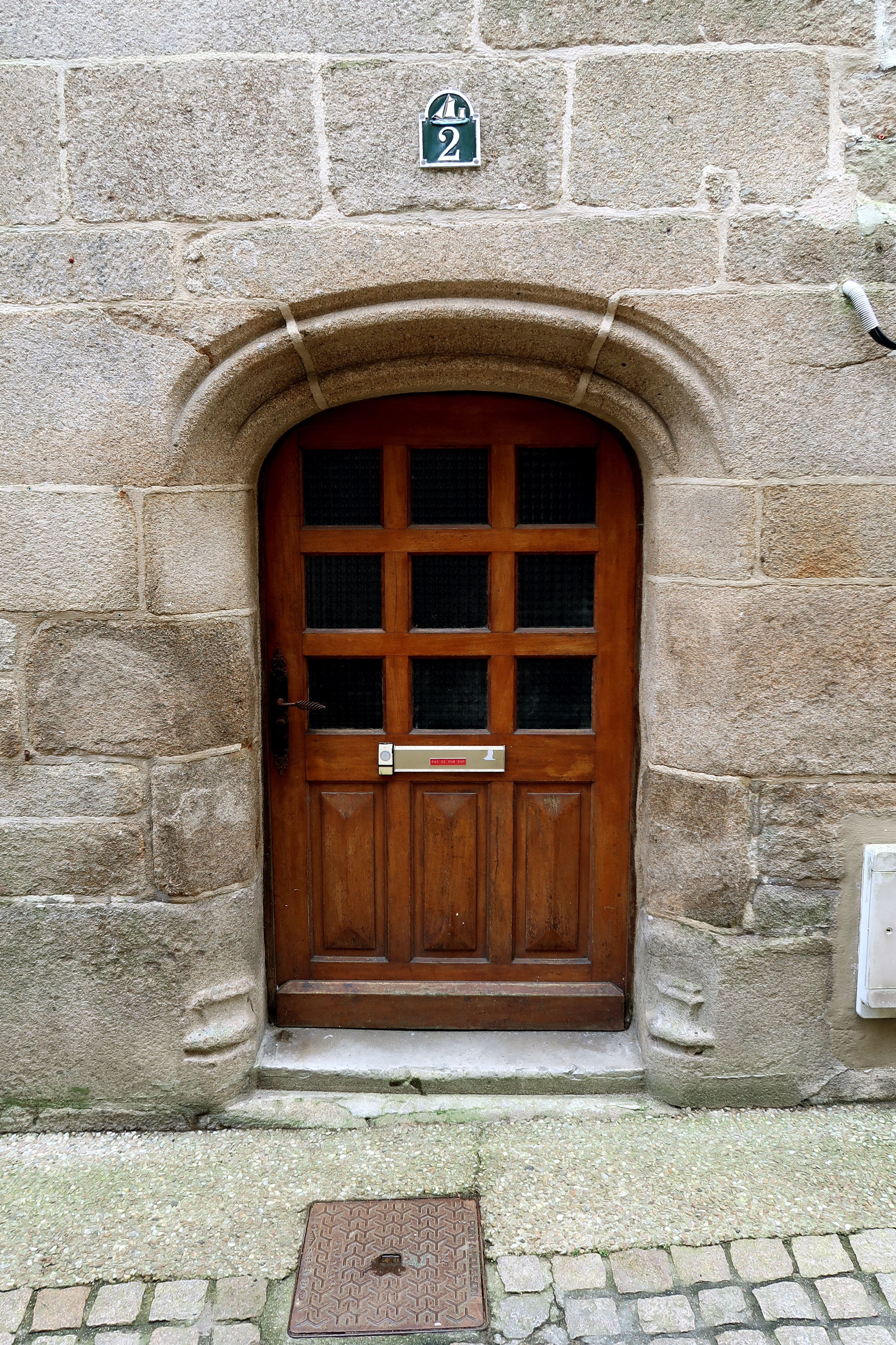 Corps ouest, élévation nord. Détail de la porte d'entrée. (2020)Immatriculation